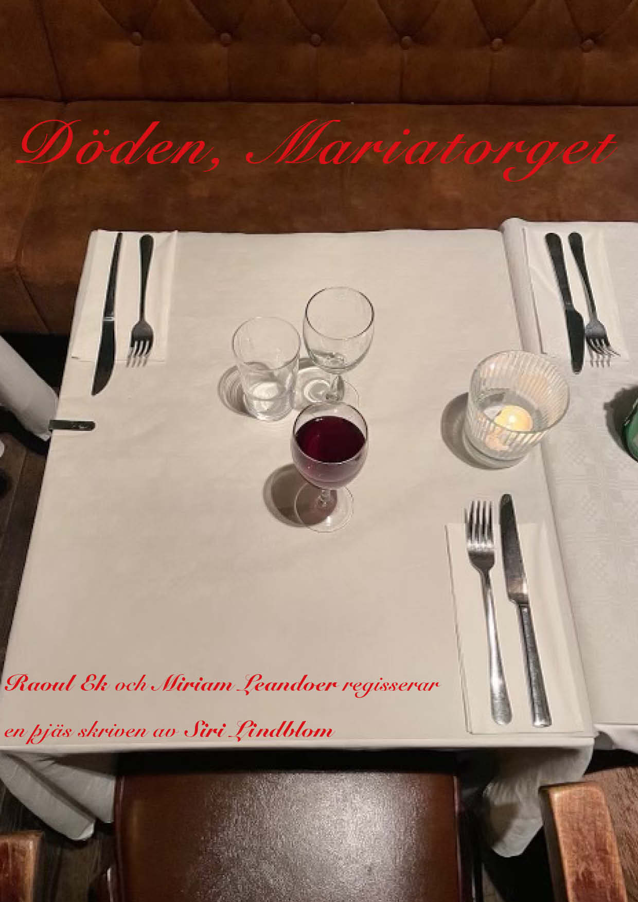 ”Döden, Mariatorget” är en postdramatisk skildring av ungdomen i Stockholm idag. Om apati, tristess och att inte vilja dö. Ett körverk i form av en gestaltad läsning.